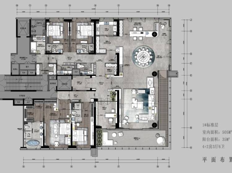 该地块总用地面积为194374.4㎡,地上总建筑面积为309686.34㎡,其中住宅总建筑面积为296494.02㎡,规划610户。两种产品:1、大平层:10栋楼一个户型560㎡,一共490户,24-26层,采用玻璃幕墙和干挂石材结构,大面积落地窗尽揽自然之美,较大楼间距达100米,50余平米南向花园阳台为生活添色彩,内部空间尺寸对标一期独栋别墅,居住舒适度高于传统别墅,在社区内有40余亩的中央景观区,不开挖地下室,森林景观就在家门口,同时按照社区地形规划超1500㎡塑胶跑道,在沿线设计众多主题景观,让运动更有乐趣。住过别墅更懂大平层,烟台成功企业家的优选居住地。