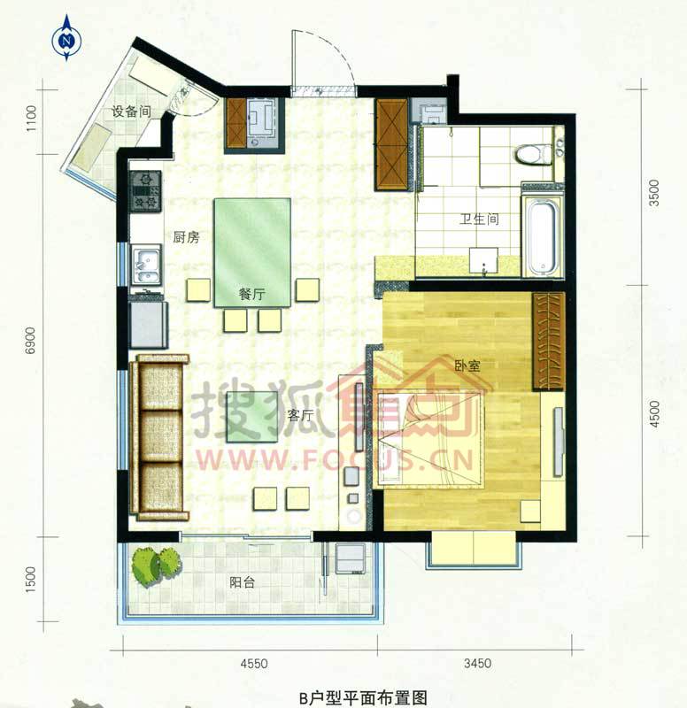 1室2厅1卫-维亚湾一室两厅一厨一卫 B