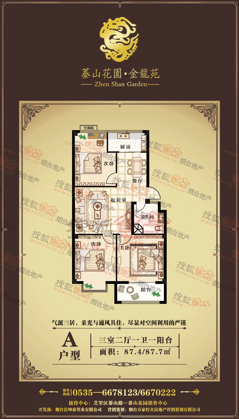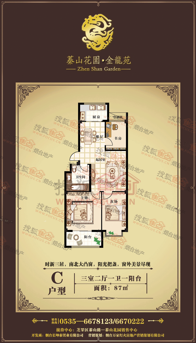 蓁山花园·金龙苑是由烟台长坤泰置业有限公司开发并建设的。金龙苑三面环山;绿荫环抱;为纯天然的“氧吧”式社区,再加上小区规划绿化率高,有几十种植物,配之以山石、道路、小径等;特殊的地理位置使环境错落有致,曾在2010年第二届网上房展会上被誉为养生楼盘。