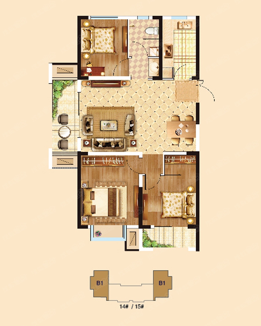 3室2厅1卫-14、15#B