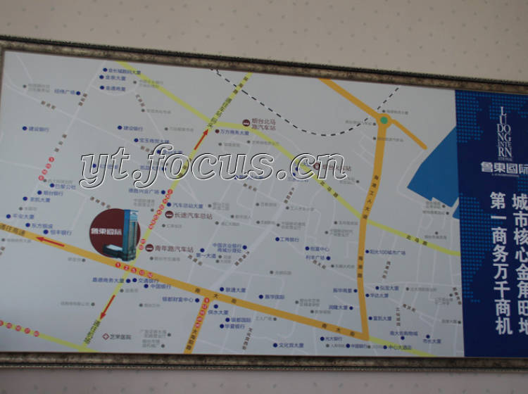 沿南大街行驶2.9公里,过右侧的烟台交通大厦,右转进入青年路,沿青年路行驶360米,过右侧的汽车总站大厦约150米后,调头看,继续沿青年路行驶410米,即可到达项目。