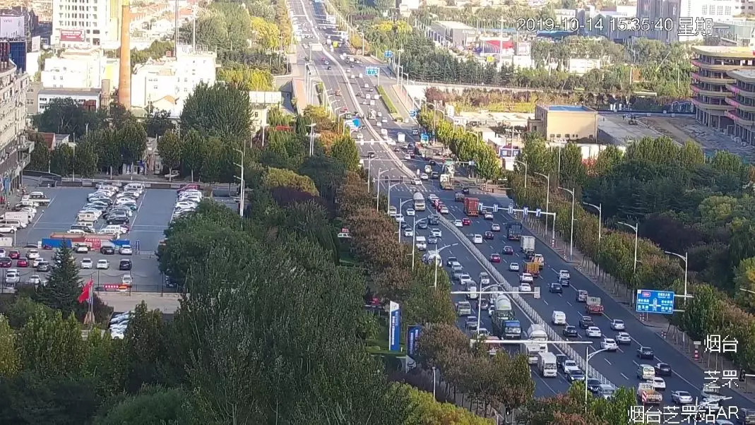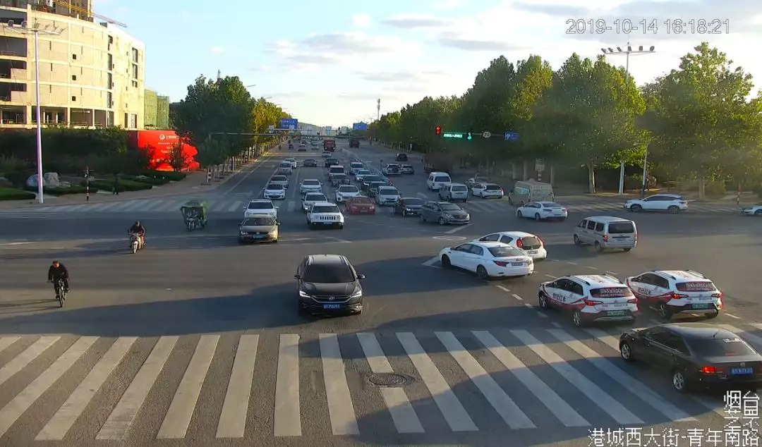 港城西大街-青年南路交叉口是芝罘区南部进出城重要交通控制点,周边有烟台三中南部校区、黄务中学、官庄小学。受市民上下班和学生上下学影响,路口呈现明显的潮汐车流现象,早高峰7时40分西进口经常压车至三和路口,晚高峰17时45分东进口车辆排队至黄务立交桥,南进口车辆溢出通姜路口,平峰期东西方向大货车占比较高。