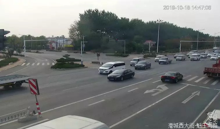 港城西大街-魁玉南路是芝罘区南部区域的重要路口,周边多为住宅区、学校等交通产生点和吸引点,高峰时段,路段交通呈现流量大,密度大特性,基本处于饱和状态,在低峰与平峰时段,交通流量较为稳定。港城西大街为城区东西主干道,路口东西方向流量远远大于南北方向。交警支队在充分调研论证基础上,进一步挖掘时空资源,优化路口交通组织方式,较大化提高路口通行效率。
