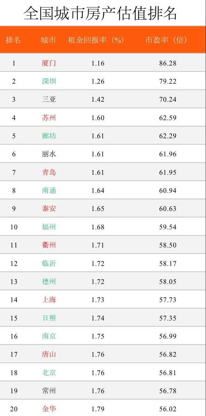 我国城市房产估值排名,厦门最贵