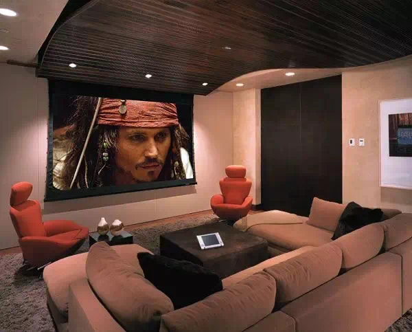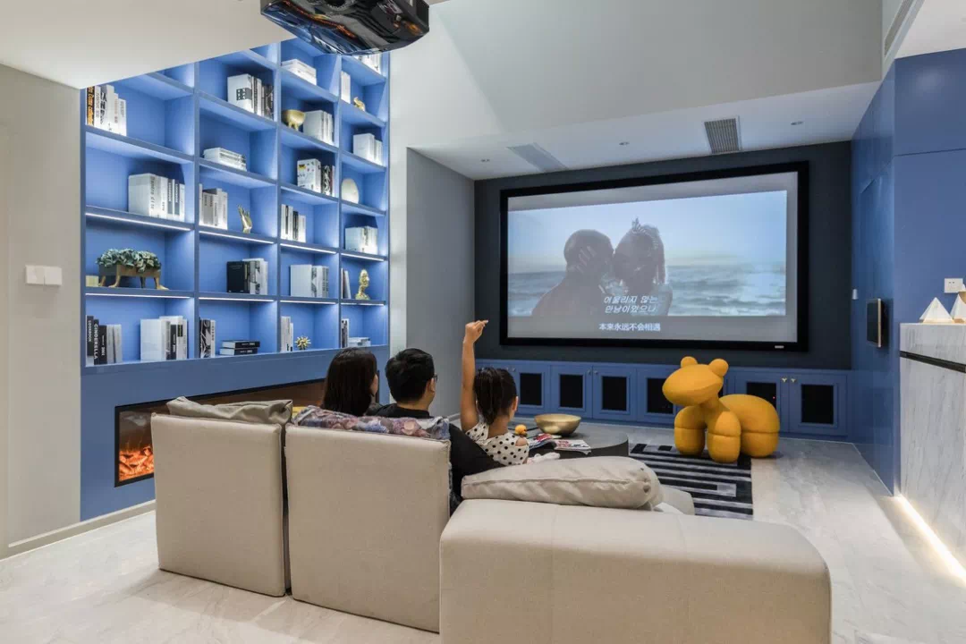 现在很多的年轻人都厌倦了沙发+电视+茶几的布局,那么在客厅设计家庭影院,也可以给生活更多的别样体验。