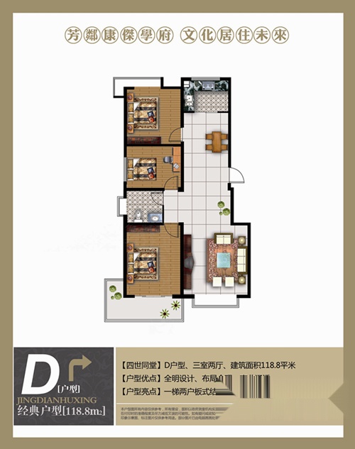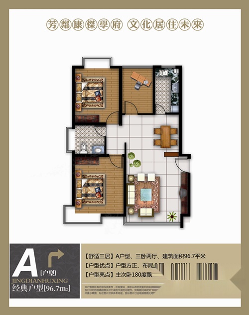 本项目位于山西省运城市空港新区,占地46.79亩。小区周边交通便利,位于运城机场附近,北至关公东路,西至康杰北路,南至侯风线,距运三高速5公里左右。文化资源丰富,康杰中学、运城幼师、三晋美术馆等教育文化机构已在此区域落户。 本项目将“规划布局人性化,住宅朝向化,绿色景观化,户型设计精细化”作为设计目标,为业主提供时尚生活蓝本。 布局:采用围合式建筑布局,形成三个园林景观节点,并通过弧线纵轴和只限横轴将各景观节点连成一体。景观轴串联了与居民生活相关的公共服务设施,方便了居民生活。小区绿化主要以本地生长的植物造景为主,树木搭配以乔灌结合,针阔混交,适当点缀花卉及爬藤植物,做到春有花、夏有荫、秋有果、冬有绿,四季有景的效果。 住宅:全部采用南北向布局,注重住宅的均好性,且高低高低错落,空间较为通透,保证每户的采光通风。户型以120平方米和90平方木为主,户型设计精细,力图在有限的空间内打造舒适的高品质居住环境。 交通:交通采取人车分流方式。小区设立两个出入口,南边为主入口,人车分流,车辆有小区道路直接进入地下车库,较少对小区的干扰,保证居民安全。西边为次入口,作为消防通道,仅限居民出入。 商业及会所:商业设施沿工业路设置,通过高低错落的建筑造型,丰富居民的生活。在小区沿景观纵轴设立会所,为小区居民提供休闲交流的平台。并结合景观设置散步、慢跑、健身场所,为老年及儿童提供活动场地,满足不同年龄段、不同阶段的需求。 节能:响应国家政策,喜爱规划、建筑、园林等方面,运用节能技术,加大对太阳能、中水系统等可持续能源的利用。