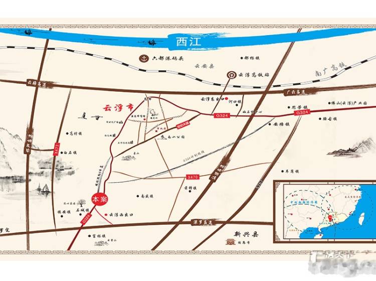 G324国道迳心岭。距离市区约8公里,约15分钟车程即可到达云城市区。 临近江罗高速云浮西出入口,可快速通过高速公路到达各地区。
