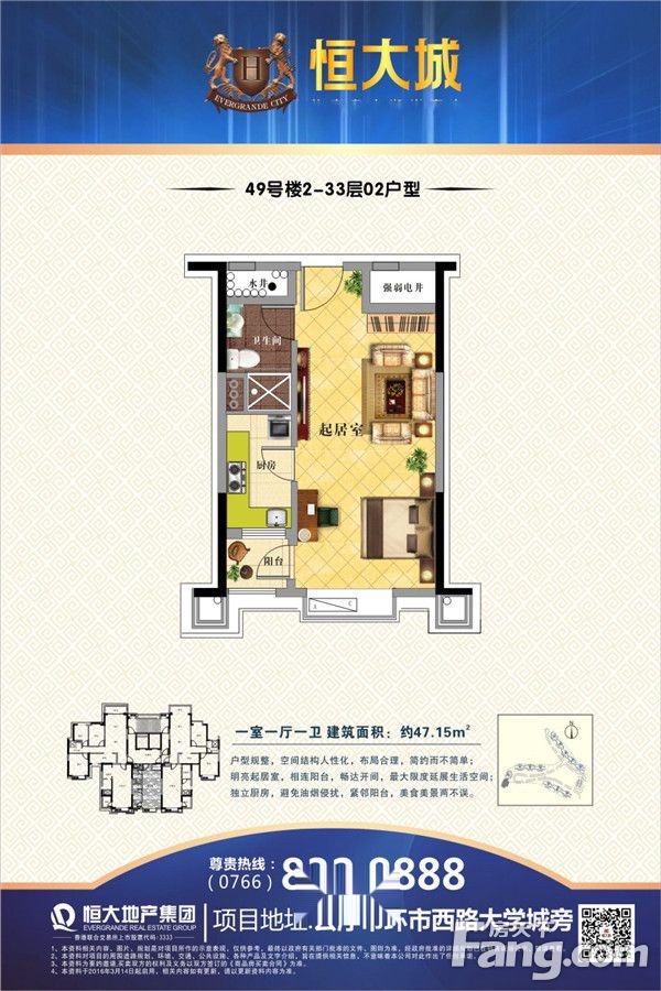 云浮恒大城位于环市西路,东临324国道,项目占地近600亩,总建设面积达102万㎡,社区配有5200㎡恒大会所、3万㎡欧陆风情叠水园林、11000㎡欧陆风情商业广场,银行、超市双语学校。现水景园林已呈现。项目注重社区文化打造,各类业主活动精彩不断;恒大城是云浮高性价比民生大盘,是当之无愧的宜君洋房。