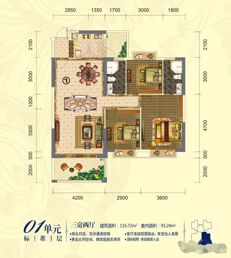 小区内部配套:小区内中央设一个8000多㎡的明珠湖为中心景观主轴,在其后附设游泳池;设计布局有75000多㎡中央集中和住宅房边的园林绿地;东北面建一座22层的星级酒店,前面设一个2500多㎡的活动小广场;在建筑造型上以西班牙风情为主要特征,东、西、北三面外围设步行街,沿街底层组合通廊的设计形成有异国风情的外向型商业空间,为居民提供一个购物、餐饮、文化娱乐、休闲消费的平台。