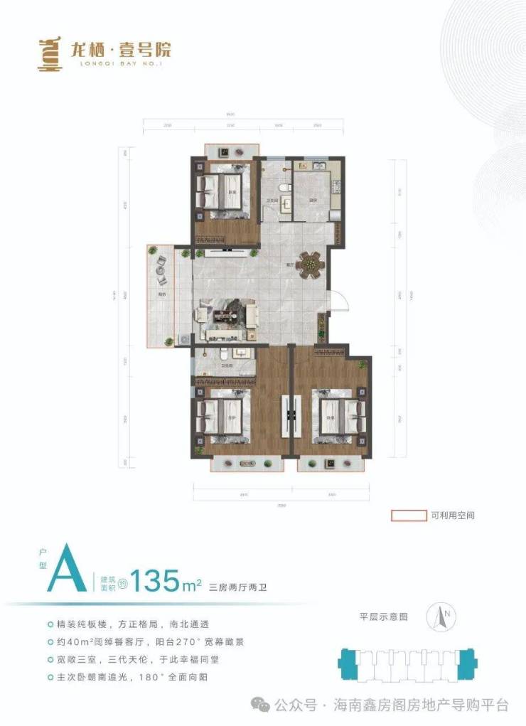 A户型:135㎡三房两厅两卫⛪龙栖壹号院售楼处电话:4008736605☎开发商已认证🌇🌇