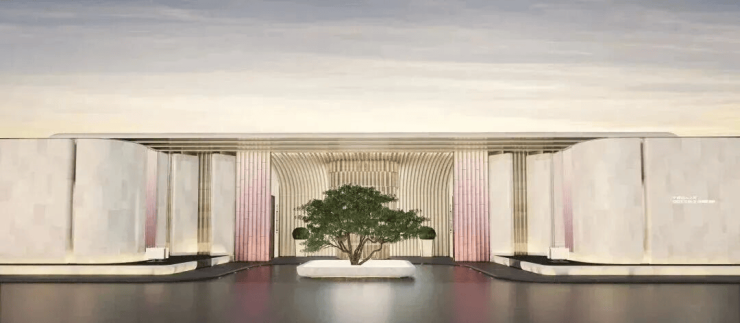 视角放低,主入口是约55米宽、约8.7米挑高的酒店式大门,再以各种奢石铺陈,可以说是整个白云最气派的大门了。