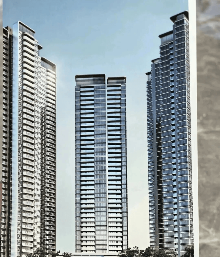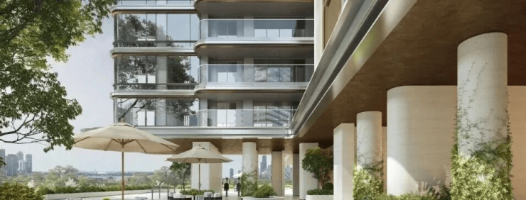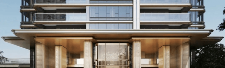 项目外立面设计,拿出了全新的美学标准。微弧流线设计,区别于多数豪宅的横平竖直线条,配合无柱转角设计,形成曲面屏式光幕立面。采用大面积全包裹金属玻璃,搭配超窄边框,整体有钻石般视觉感。