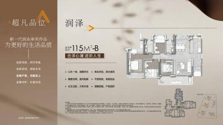 建面115平四房两卫,这个户型从玄关、客餐厅、主卧都做到了南北对流,另外还算五开间朝南,无论客厅还算主次卧,光线都非常好