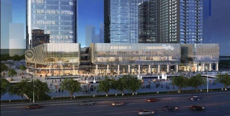 其由一座320米的超甲级写字楼、两栋铂金公寓、以及一座高端shopping mall组成。