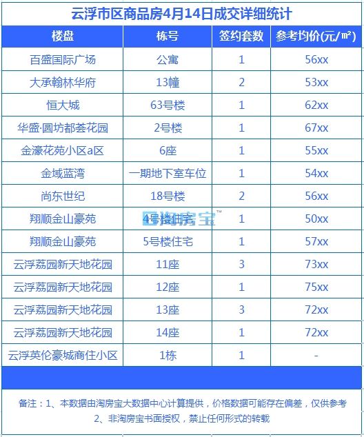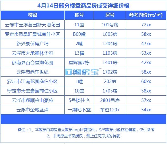 2.以上数据为云浮淘房宝特别搜集整理,未经授权严禁任何形式的转载!