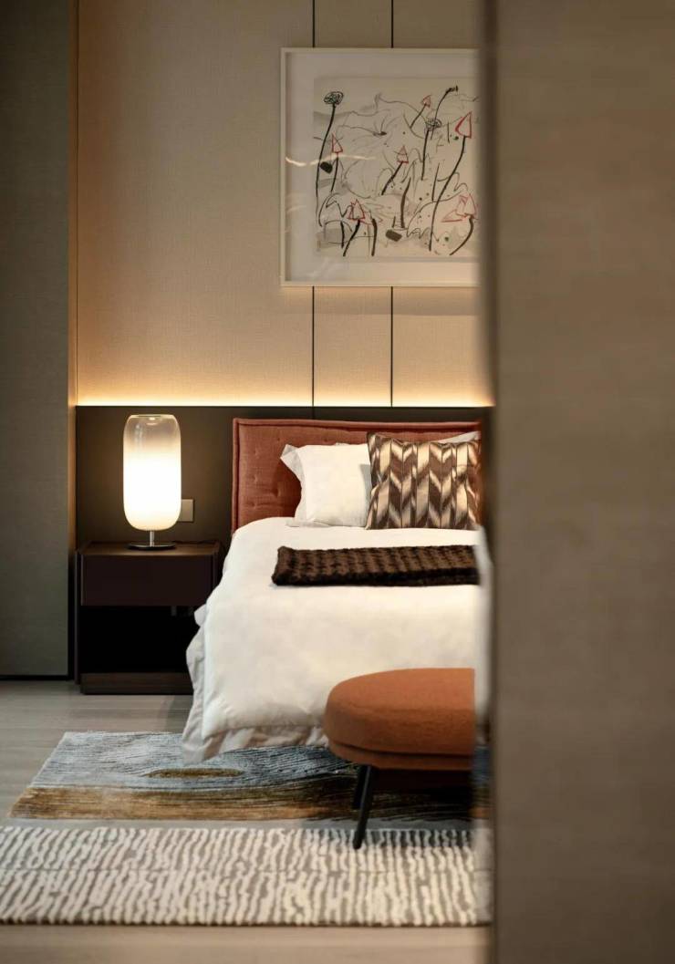 精研意大利进口家私,主卧套房以独立卫浴、衣帽间及半山露台定义奢适尺度。