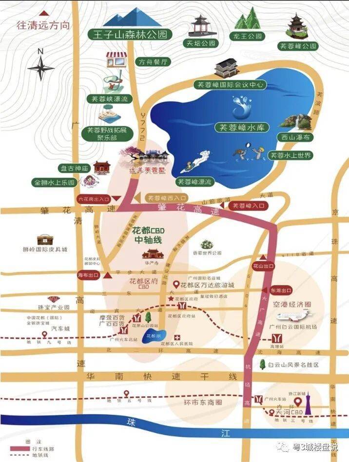 4、「高速」:5分钟上高速,肇花高速、许广高速、大广高速、机场高速等多条高速链接,约50分钟车程到珠江新城。
