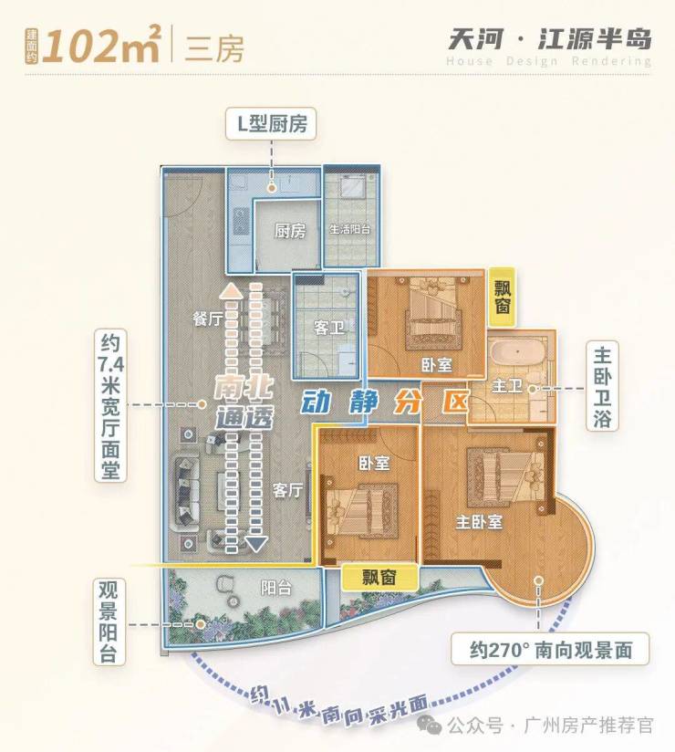 • 270°景观阳台设计,单边采光