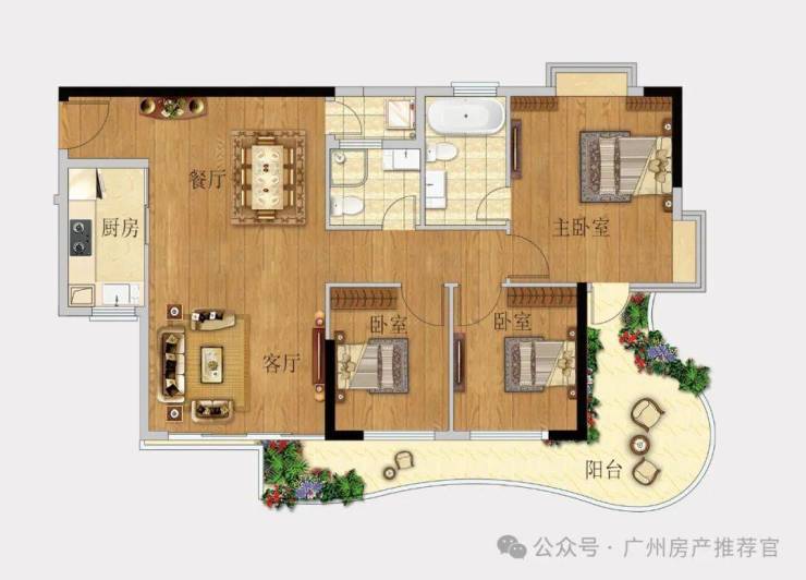 🅣🅞🅟02户型【95㎡3房2卫】东南向望江