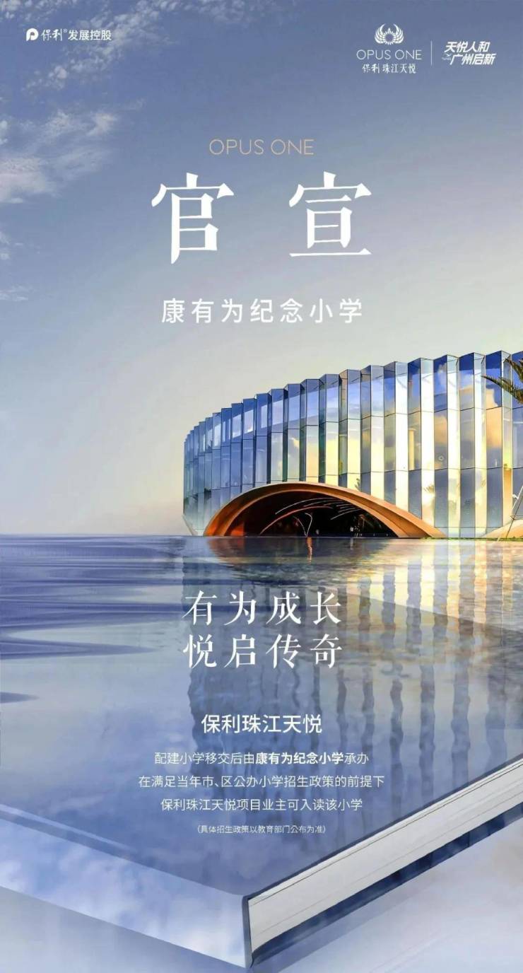 自配24班公立小学,将由保利配建,学校移交后由荔湾区康有为纪念小学承办,在满足当年市、区公办小学招生政策的前提下,保利天悦项目业主可入读该小学!