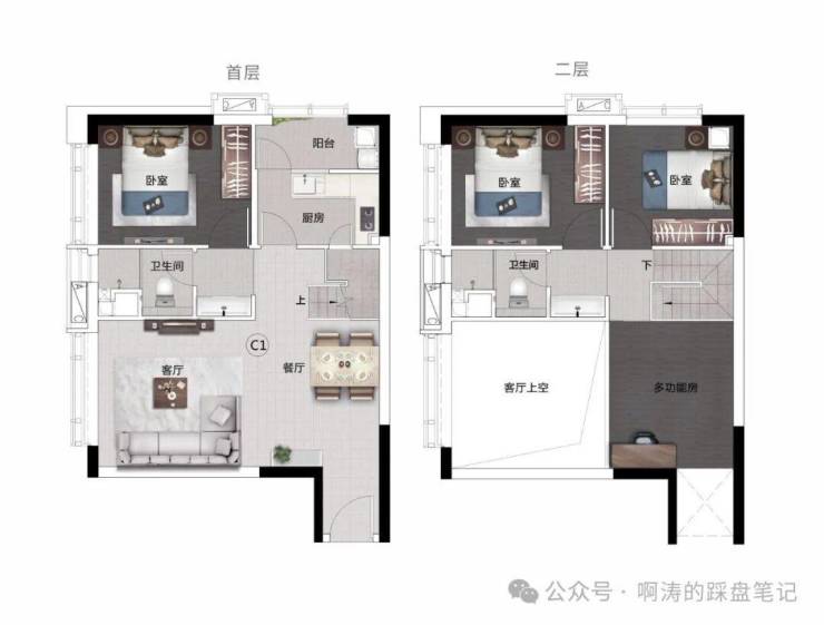 2.轻奢平层公寓 |约 59㎡一室二厅一卫