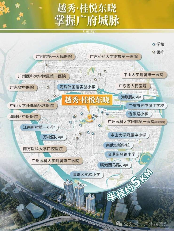 项目对口海珠外国语实验附属小学,由万松园小学和海珠实验中学联合创办,师资力量较强。初中派位包含广州市第五中学、海珠外国语实验中学、南武中学附属学校等优质学校,教育配套有保障。