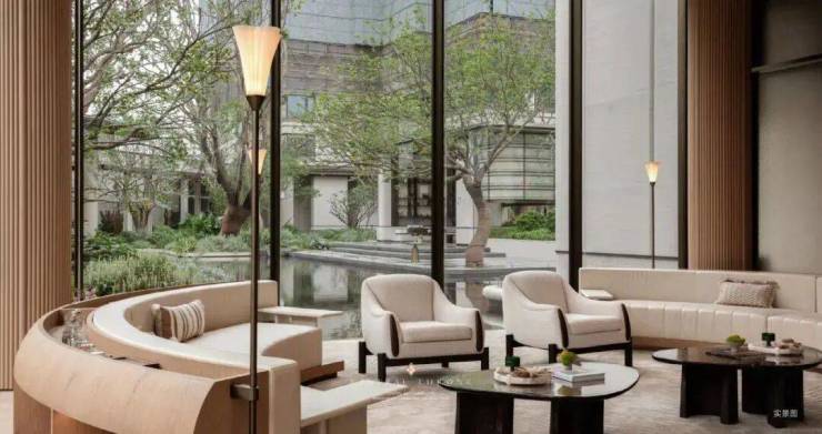 社区内部复刻安缦度假美学:近50米恢弘酒店式环岛前庭、约1500㎡林下浮岛花园(围炉茶叙听静水流深,太治愈了!)、约1000㎡无界漂浮泳池(浸入式体验安缦式漂浮艺术)。