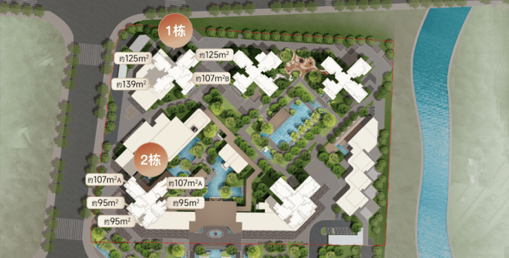 面积段约95-139㎡低密瞰江奢宅