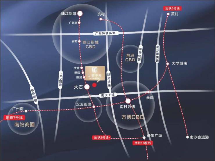 上馨华府距珠江新城、琶洲直线距离约10公里,地铁三号线6站直达珠江新城,无缝接轨都市高效生活圈。