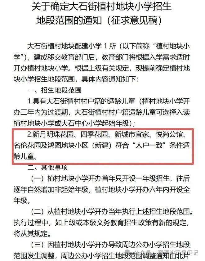 越秀·鸿璟台这刚好划进植村地块小学招生范围。就是那张征求意见稿里,圈出的 “新月明珠、四季花园、鸿图地块新建小区” 片区。