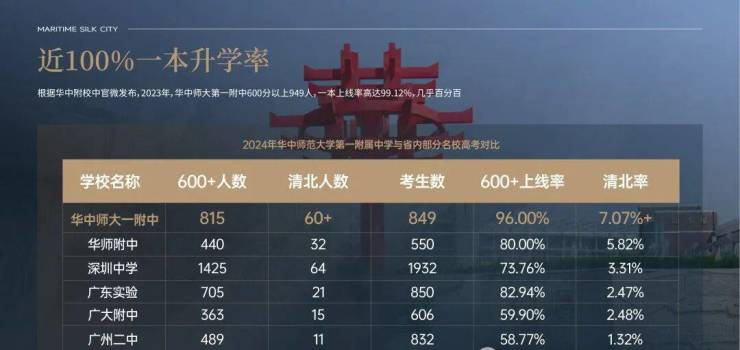 2021-2023年,华中师范大学第一附属中学每年都有约70-80人进入清北等国内顶级高校。这个数据很恐怖,拿广州神学院华附来说,每年进入清北20-30人,广东最牛的中学——深圳中学2023年进入清北的49人,广大附中也只有15人,差距比较明显!