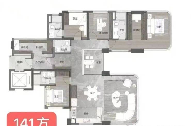【澜序丨建面约141㎡全景舱户型 五空间两厅四卫】
