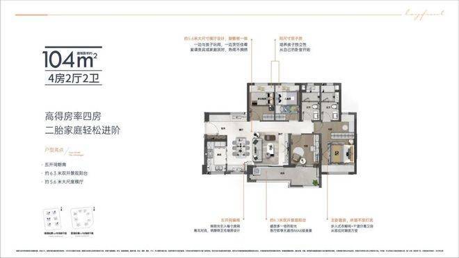 同等面积多出市面上其他产品一个卫生间。从单身到三代同堂,每个家庭阶段都能有舒适的体验