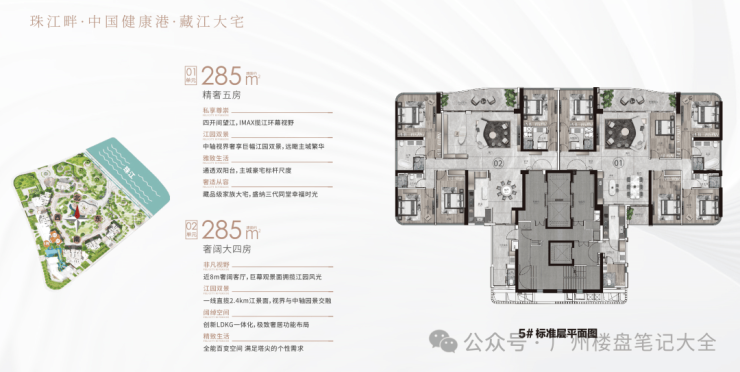 户型:建面约233-285㎡四至五房,约255㎡东南向一线阅江新品加推。极致3.4-3.6m层高,14-40层高层、超高层