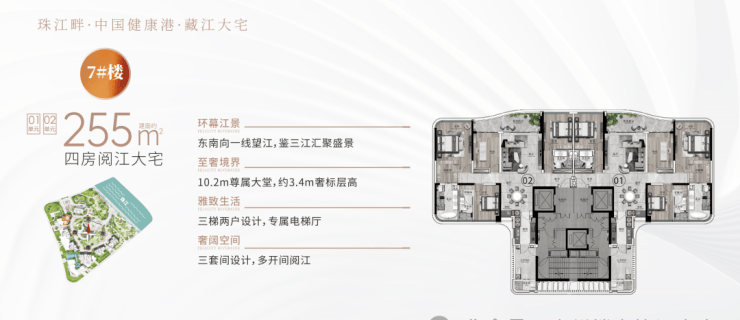 户型:建面约233-285㎡四至五房,约255㎡东南向一线阅江新品加推。极致3.4-3.6m层高,14-40层高层、超高层