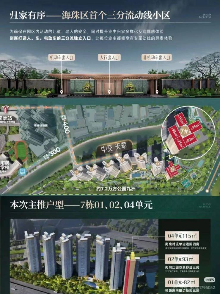 交通枢纽优势显著,步行约 400 米达2 号线 / 广佛线南洲站,北濠涌引桥通车后 15 分钟速达珠江新城,路网贯通全城。教育硬核,配 9 班幼儿园,邻在建广州五中附属实验学校(九年一贯制),全龄教育闭环。