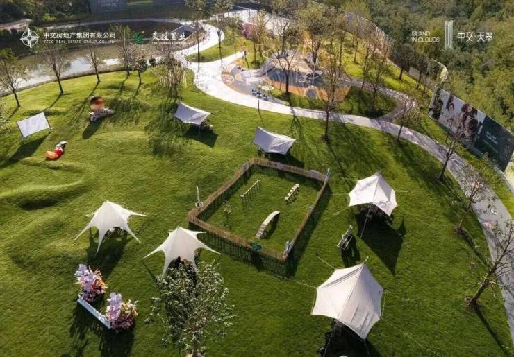 宠物游乐设施、草坪跑道、宠物便便箱,为毛孩子们建造一个专属乐园,总面积约为340㎡。