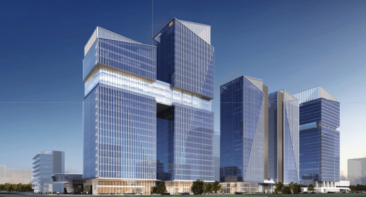 地标建筑群:现代简约风,玻璃幕墙 + 铝板,马鞍岛封面建筑