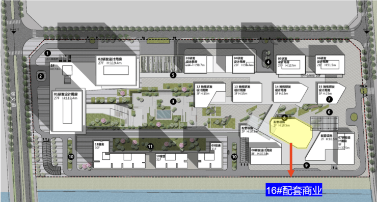 产品形态:高层研发楼、独栋总部、生态孵化园,层高 3.1-4.5 米,标准层 500-2200㎡