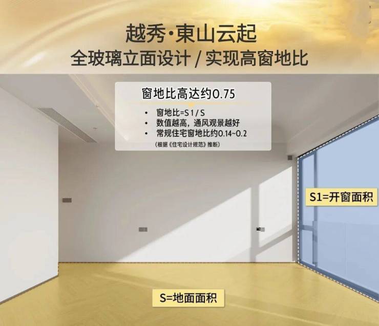 而大片玻璃立面,使室内窗地比高约0.75,为常规住宅的3.8-5.4倍,邀清风阳光无界入户,地标景观不过是背景墙。