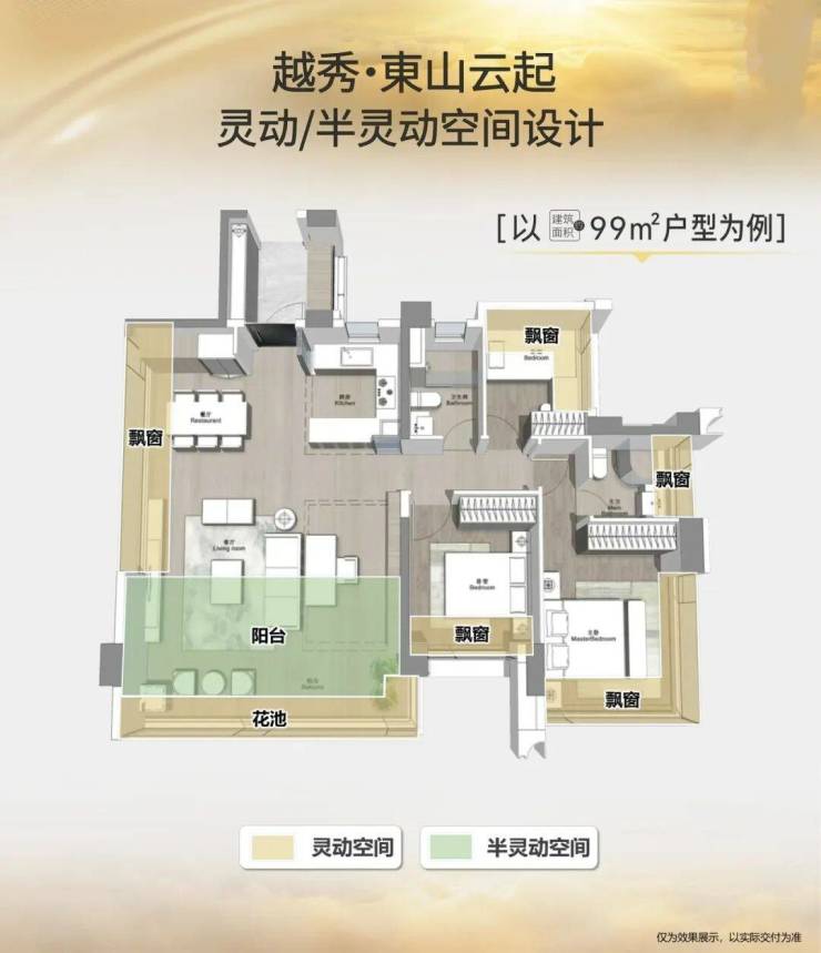 作为越秀区首个“新规”项目,东山云起在产品设计上带来了诸多创新。项目阳台占比达20%,使用率超100%,全南向设计,彻底告别了老城区住宅使用率普遍停留在80%的困境。