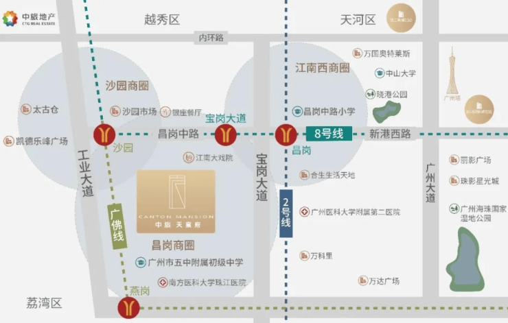 【海珠昌岗中路·核芯绝版地段】 买房③要素,地段、地段、还是地段,项目位于海珠昌岗中路与宝岗大道交汇处,宝岗大道、工业大道、江南大道,海珠三大黄金走廊环绕。 多年无新增供应用地,海珠不可复制的核心地段。
