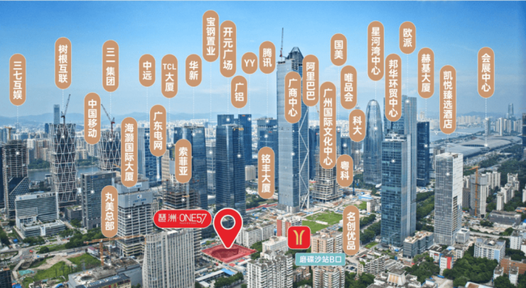 琶洲One57位于广州海珠区琶洲西区,广州地铁8号线
