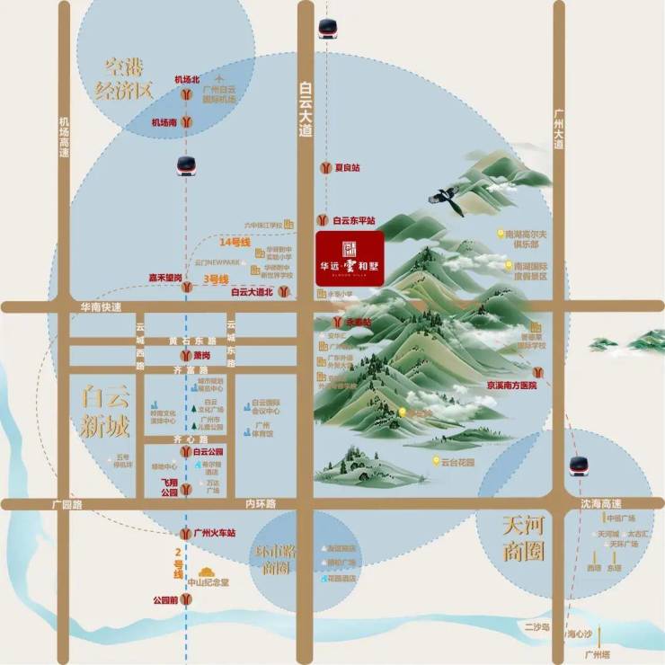 1)商业配套:安华汇、绿地中心、岭南新世界、白云万达、五号停机坪、东平汽车小镇(在建中)等