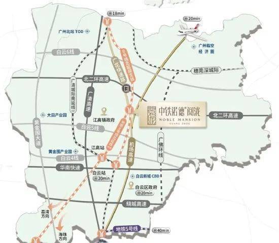 双向十车道广花快速路,无红绿灯、10分钟直达白云新城、3分钟高速口上环城高速、30分钟到珠江新城、2小时通达大湾区各大城市。