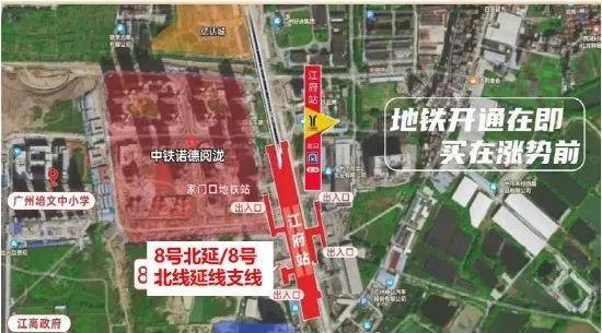 家楼下就是双地铁8号线北延段/北延段支线【江府站】,目前工程进度2%,未来坐地铁6站珠江新城CBD,10站北京路商圈、直达广州市政府,每年达50-100万人流量。