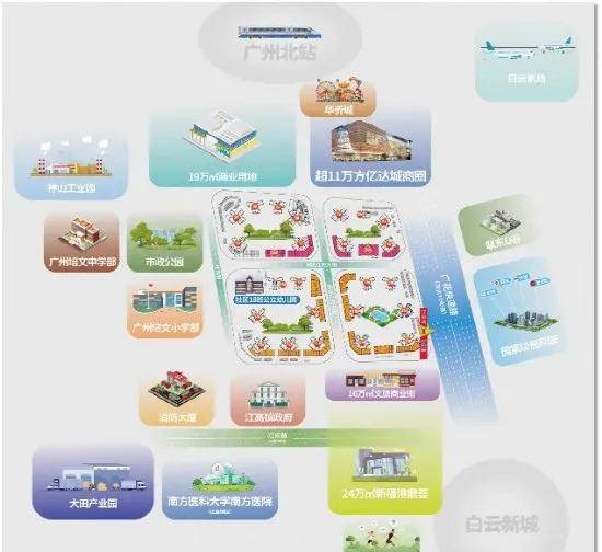 社区自带1万²临街商业街,11万m²亿达城一路之隔,万达影城、亿达商超、肯德基、麦当劳已进驻,白云北唯一60m摩天轮,聚集广州北部人流,将成为未来最浓厚商业氛围的区域。