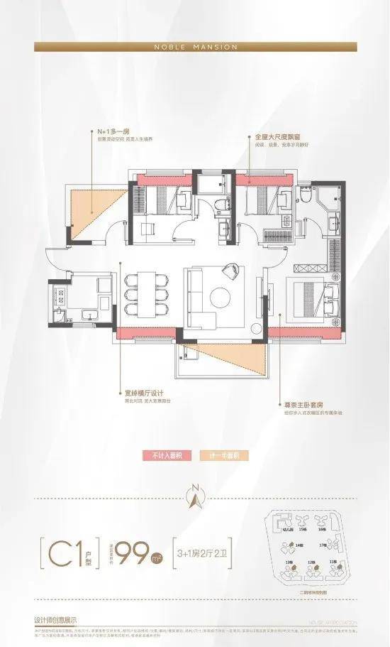 2梯4户、百米楼距、楼王C位、俯瞰6万平园林
