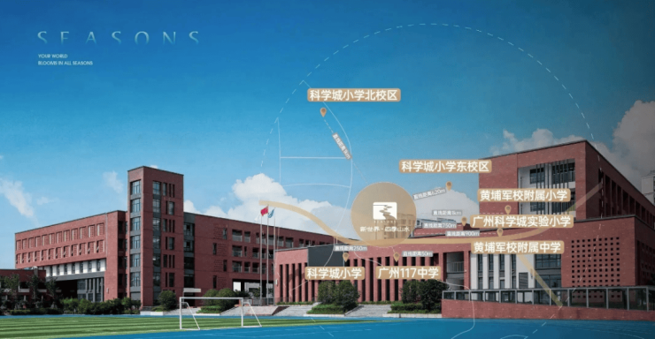 周边学校丰富,资质也不错;项目约1公里,可步行的范围内,小学有5所(含已规划的一所),包括科学城小学、黄陂小学、黄埔军校小学、联和小学;中学2所,为117中学和黄埔军校中学