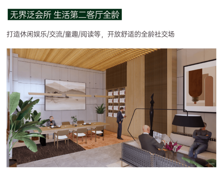 泛会所会客厅:架空层设置有休闲会客厅、图书阅览室、室内健身区及儿童活动区,为业主提供全天候、多功能的社交与娱乐场所